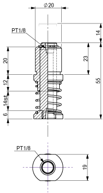 1/8" thread for adding appropriate stem attachment head and suction cups.