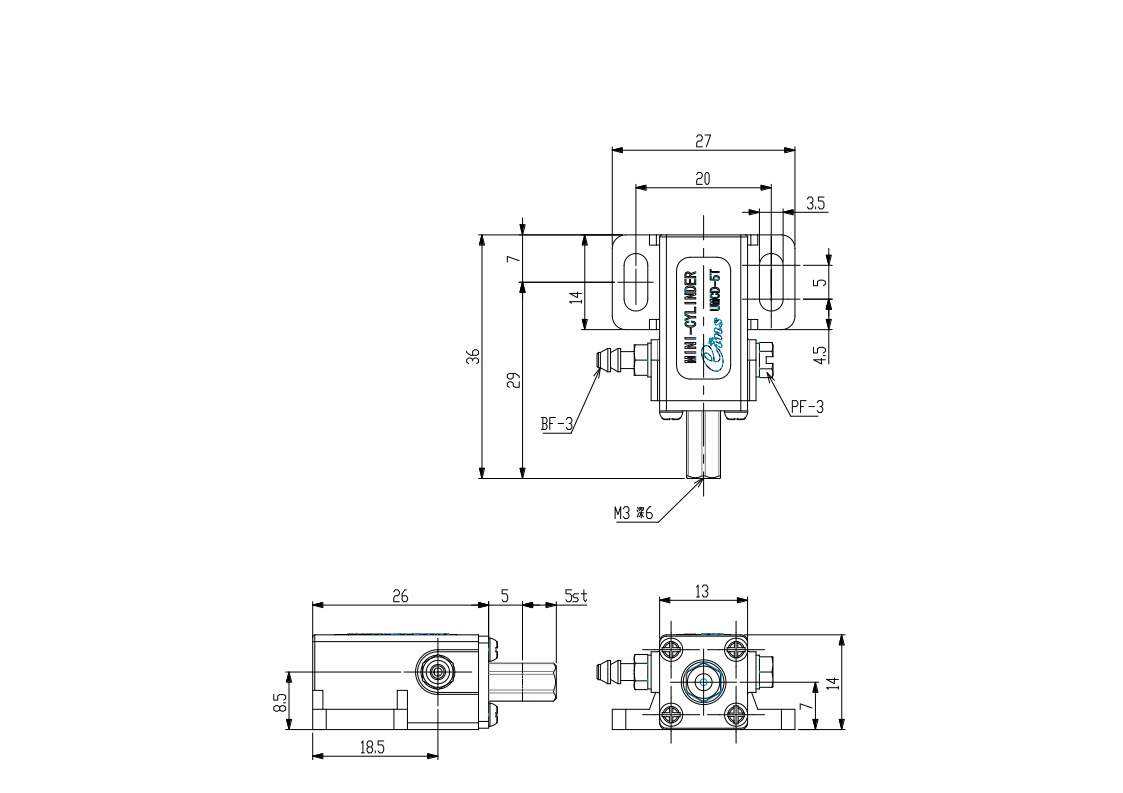 Micro mini cylinder that utilizes retracting action to clamp parts.