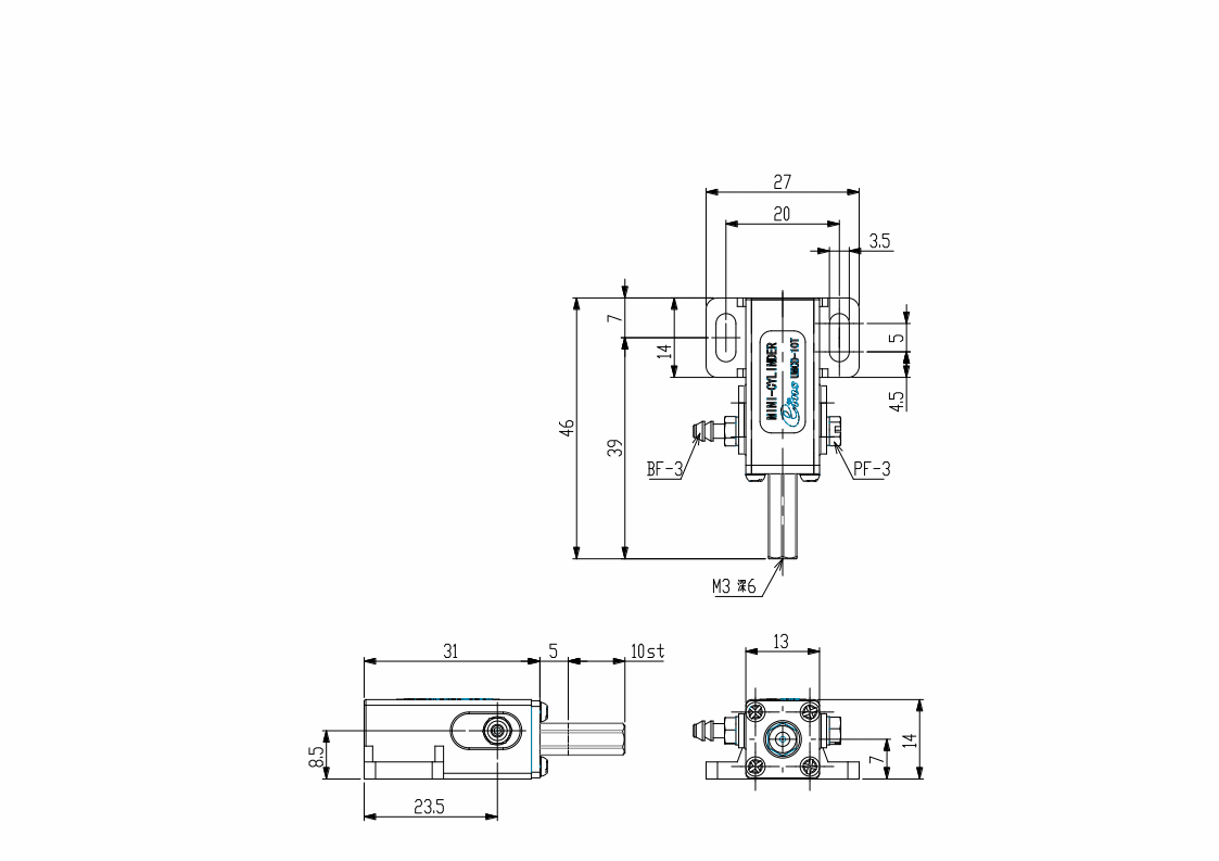 Micro mini cylinder that utilizes retracting action to clamp parts.