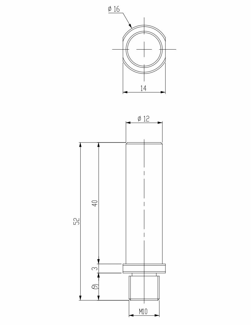 Alternative shaft for the ESVP10-A-20 ejector (#042129) to change from Ø20mm down to Ø12mm.