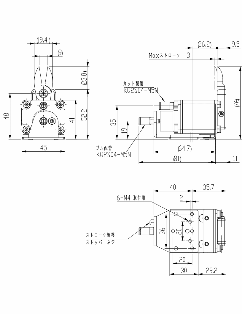 Carbide straight blade mini air nipper that utilizes two adjustment screws to allow for opening of the blade for different gate material.