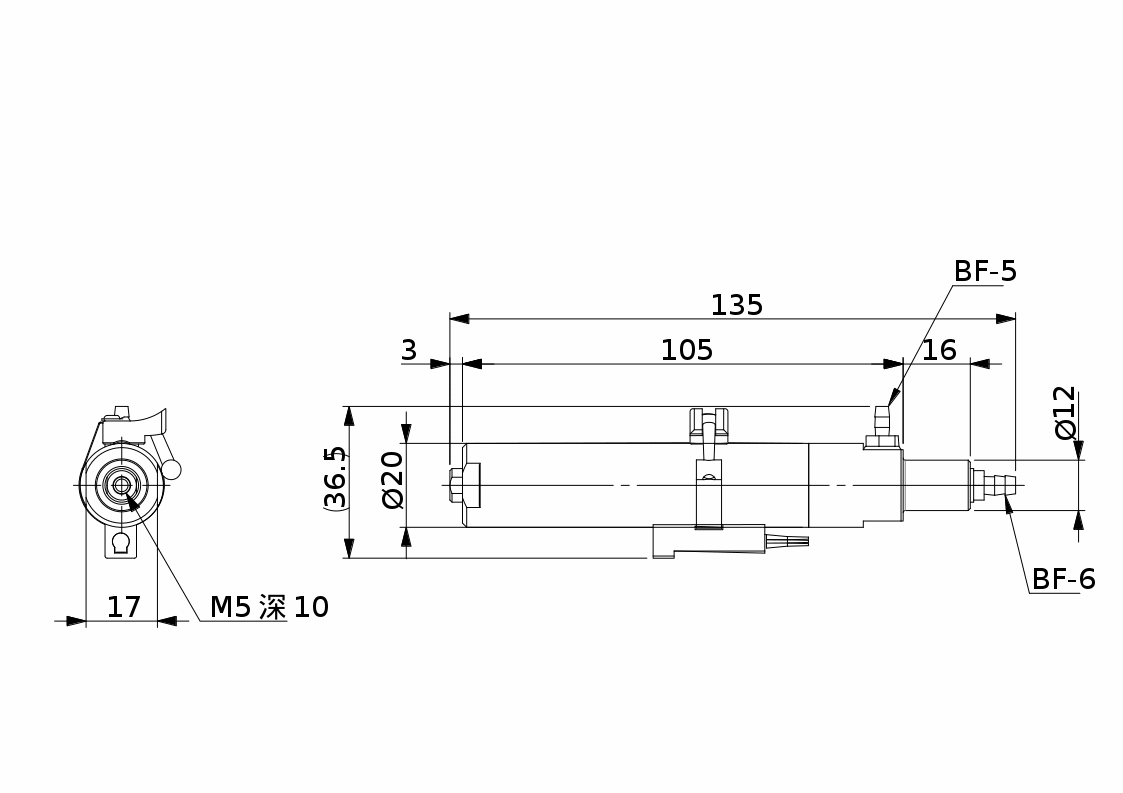 Pnuematic cylinder with suction port that also includes sensor for cylinder retraction confirmation.